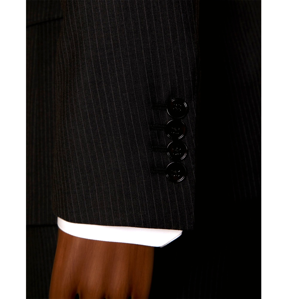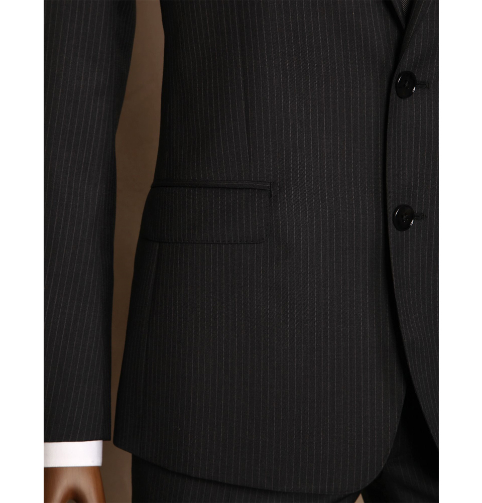 Костюм Dolce Gabbana приталенным силуэтом, эффектно подчеркивающим фигуру. Элегантный двубортный костюм выполнен из натуральной шерсти темно-синий тонкую полоску 2 пуговицы, Сзади две боковые шлицы